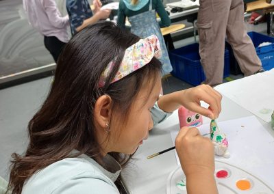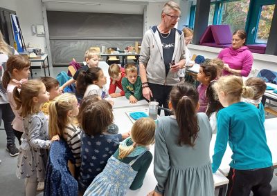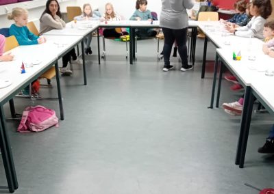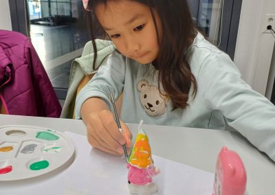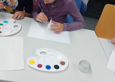 Diesmal war die Kreativität der Kinder gefragt. Sie stellten mit den Anleitern handbemalte Rapswichtelkerzen und Kinderseifen her.